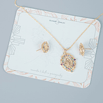 Set collar y aretes conjunto virgen de la milagrosa con zircón